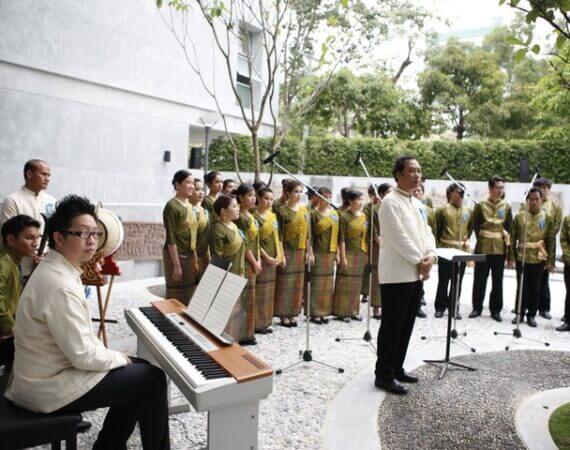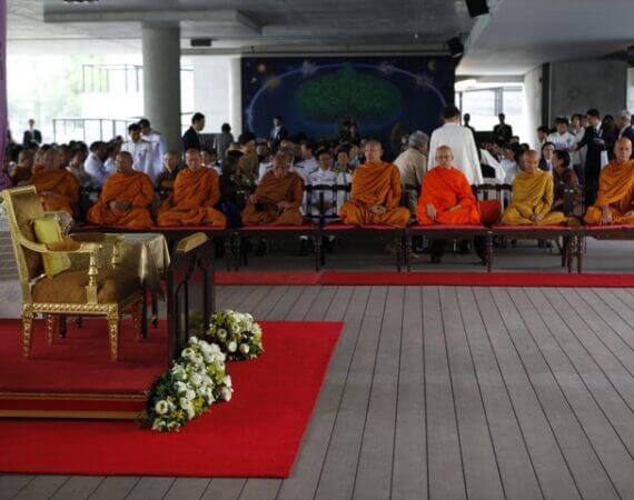 ภายหลังรถยนต์พระที่นั่งถึงสถานที่จัดงาน สมเด็จพระเทพรัตนราชสุดาฯ เสด็จเข้าภายในอาคาร ประทับพระราชอาสน์ และเสด็จไปทรงประเคนของที่ระลึกแด่พระภิกษุสงฆ์ จากนั้นทอดพระเนตรการขับร้องประสานเสียง “พุทธทาสจักไม่ตาย” โดยคณะนักร้องประสานเสียงสวนพลู