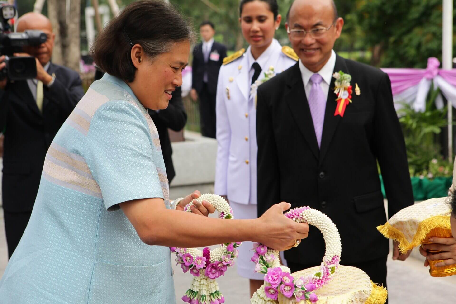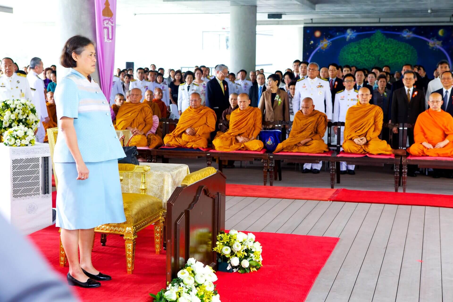 ภายหลังรถยนต์พระที่นั่งถึงสถานที่จัดงาน สมเด็จพระเทพรัตนราชสุดาฯ เสด็จเข้าภายในอาคาร ประทับพระราชอาสน์ และเสด็จไปทรงประเคนของที่ระลึกแด่พระภิกษุสงฆ์ จากนั้นทอดพระเนตรการขับร้องประสานเสียง “พุทธทาสจักไม่ตาย” โดยคณะนักร้องประสานเสียงสวนพลู