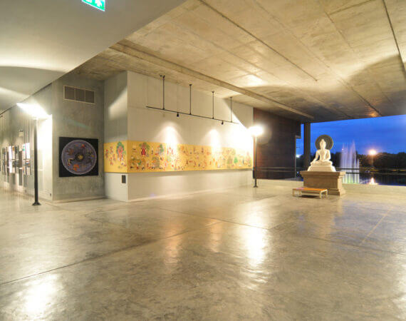 นอกจากนี้ งานออกแบบและก่อสร้างทั้งหมดยังเป็นงานจิตอาสา ไม่มีค่าจ้างใดๆ แต่บริษัทที่เข้าร่วมก็เต็มใจจัดสรรบุคลากรเพิ่มให้กับโครงการดังกล่าวจนกระทั่งงานก่อสร้างเสร็จสิ้น “ที่เราสมัครใจทำก็เพราะเราศรัทธาในพุทธศาสนา สถาบันอาศรมศิลป์เป็นองค์กรไม่แสวงกำไรที่ก่อตั้งขึ้นบนหลักศาสนาพุทธ อีกทั้งเราเล็งเห็นว่าโครงการนี้จะเป็นประโยชน์อย่างยิ่งต่อมวลมนุษยชน ไม่ใช่แค่คนไทยเท่านั้น” ธีรพลเสริม