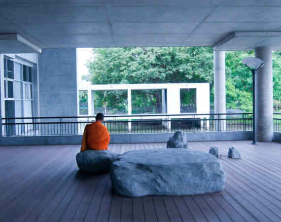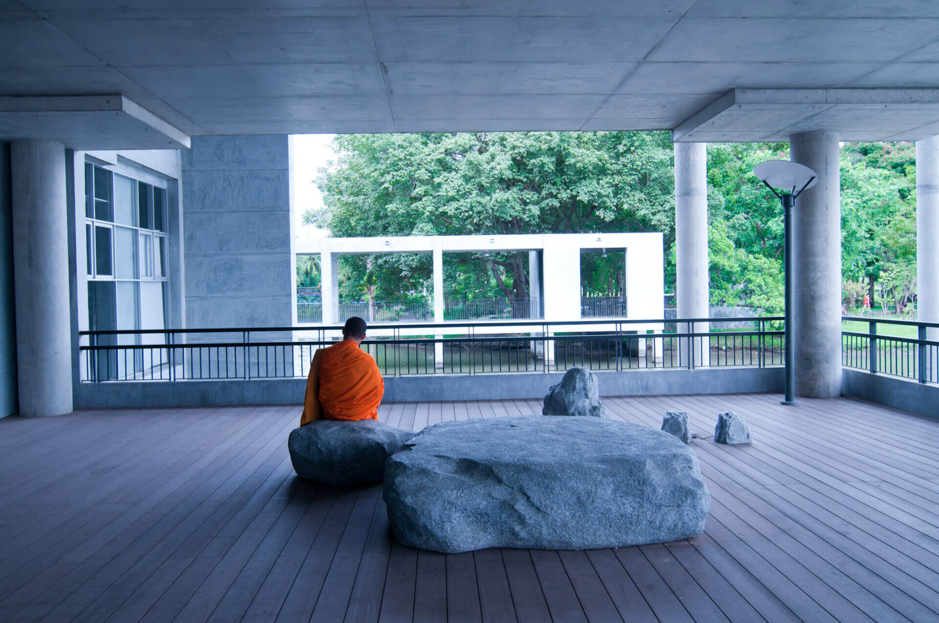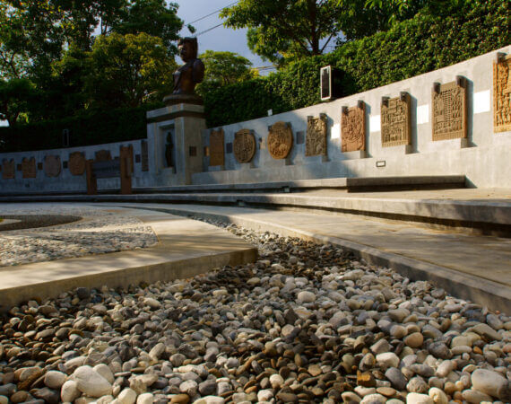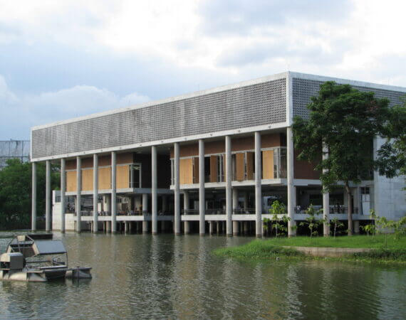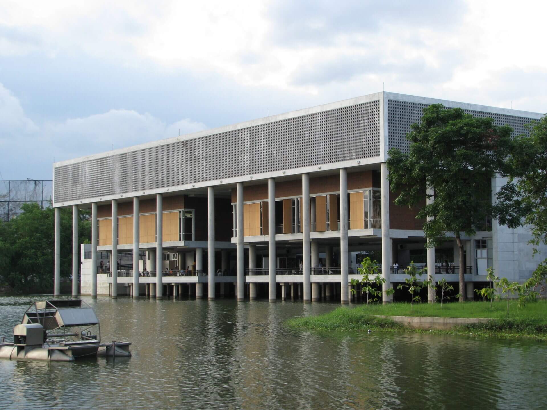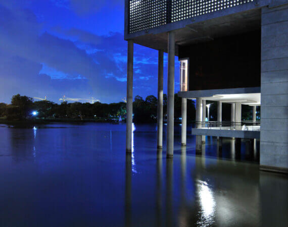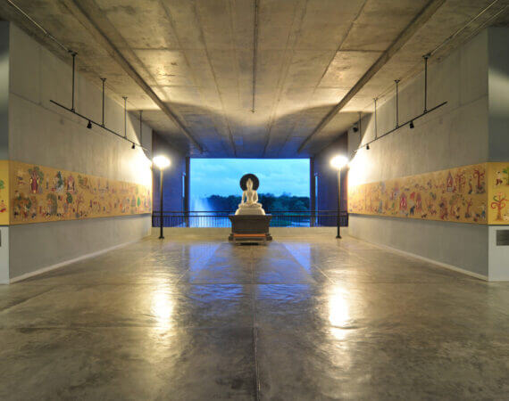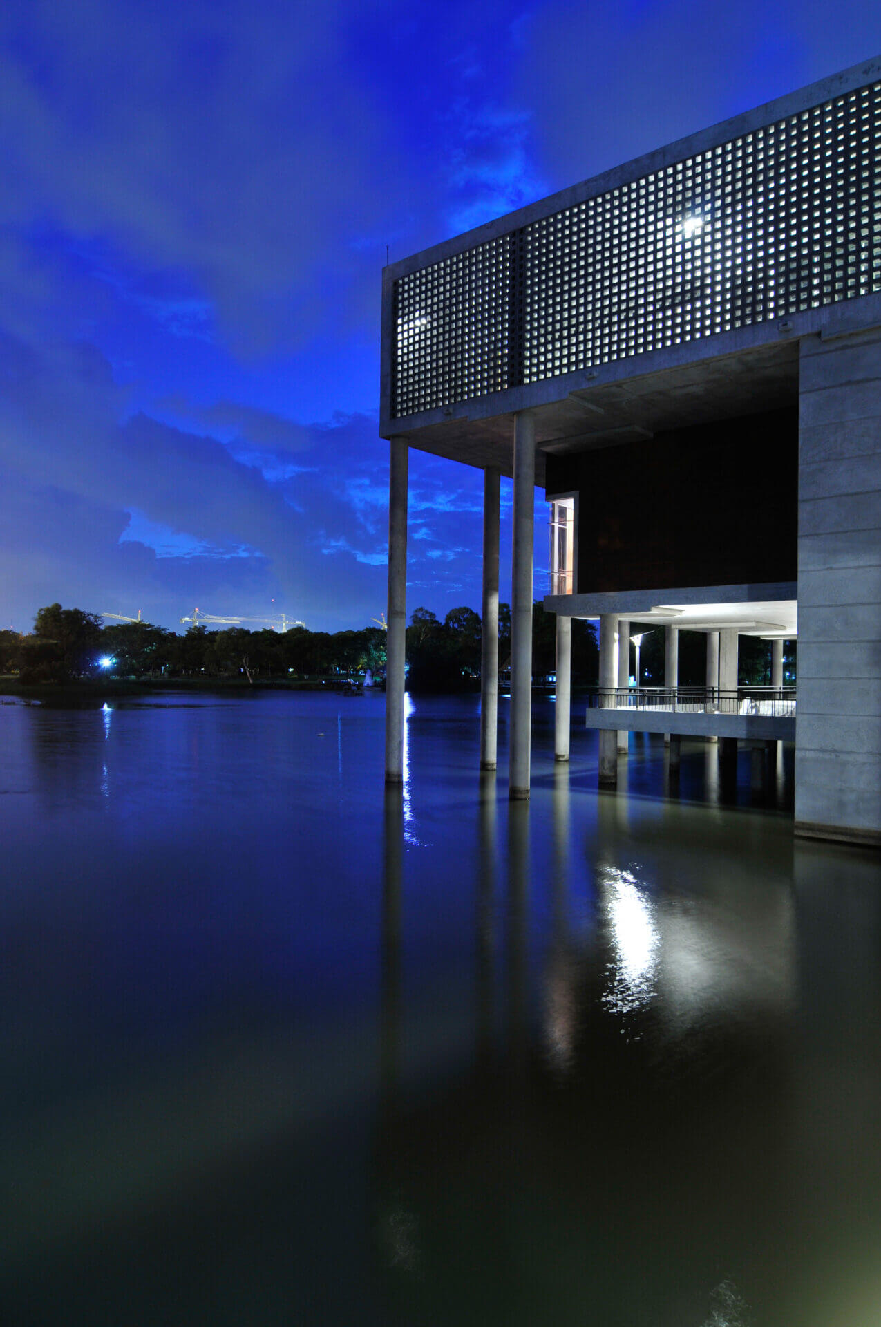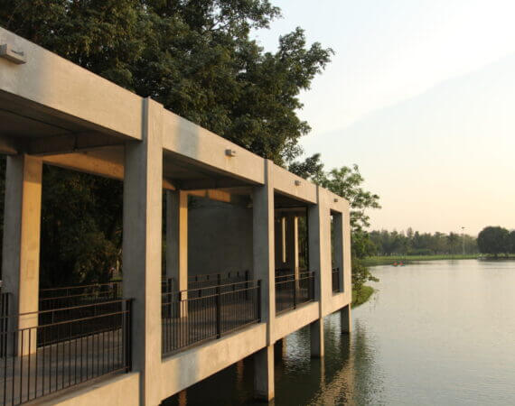 หอจดหมายเหตุ พุทธทาส อินทปัญโญ หรือ ‘สวนโมกข์’ ในสวนวชิรเบญจทัศอันร่มรื่น คือสถาปัตยกรรมโมเดิร์นเหนือผิวน้ำที่สะท้อนแนวคิดและชีวิตสมถะของท่านพุทธทาสภิกขุ ความ ‘น้อยแต่มาก’ ดูจะเป็นคติธรรมที่แฝงอยู่ในทุกมุมตึกและทางเดินของสถานปฏิบัติธรรมแห่งยุคสมัยแห่งนี้