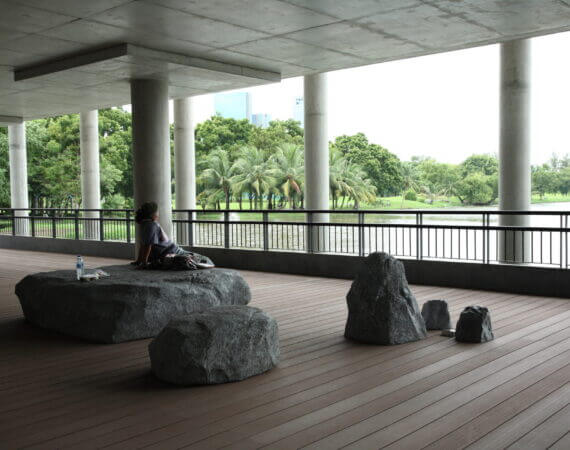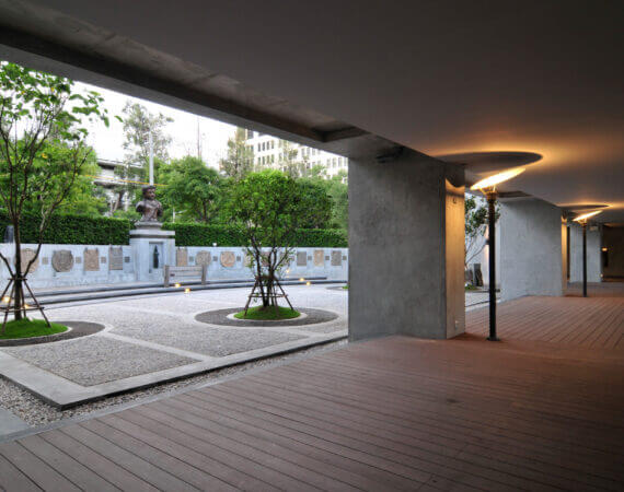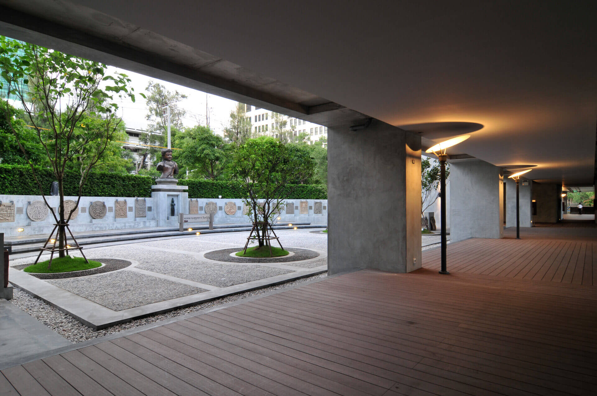 “ตัวอาคารถูกออกแบบมาเพื่อรองรับกิจกรรมเหล่านี้ทั้งหมด” นพ.บัญชาเล่า ซึ่งธีรพลเห็นด้วย โดยตัวอย่างที่เด่นชัดที่สุดคือพื้นที่ใต้ถุน อันเป็นลานอเนกประสงค์มองเห็นวิวสระน้ำและทัศนียภาพโดยรอบ “พื้นที่ดังกล่าวต้องมีความยืดหยุ่น เพราะตอนเราออกแบบ ทางหอจดหมายเหตุยังไม่มีการกำหนดแผนหรือกิจกรรมที่ชัดเจน”