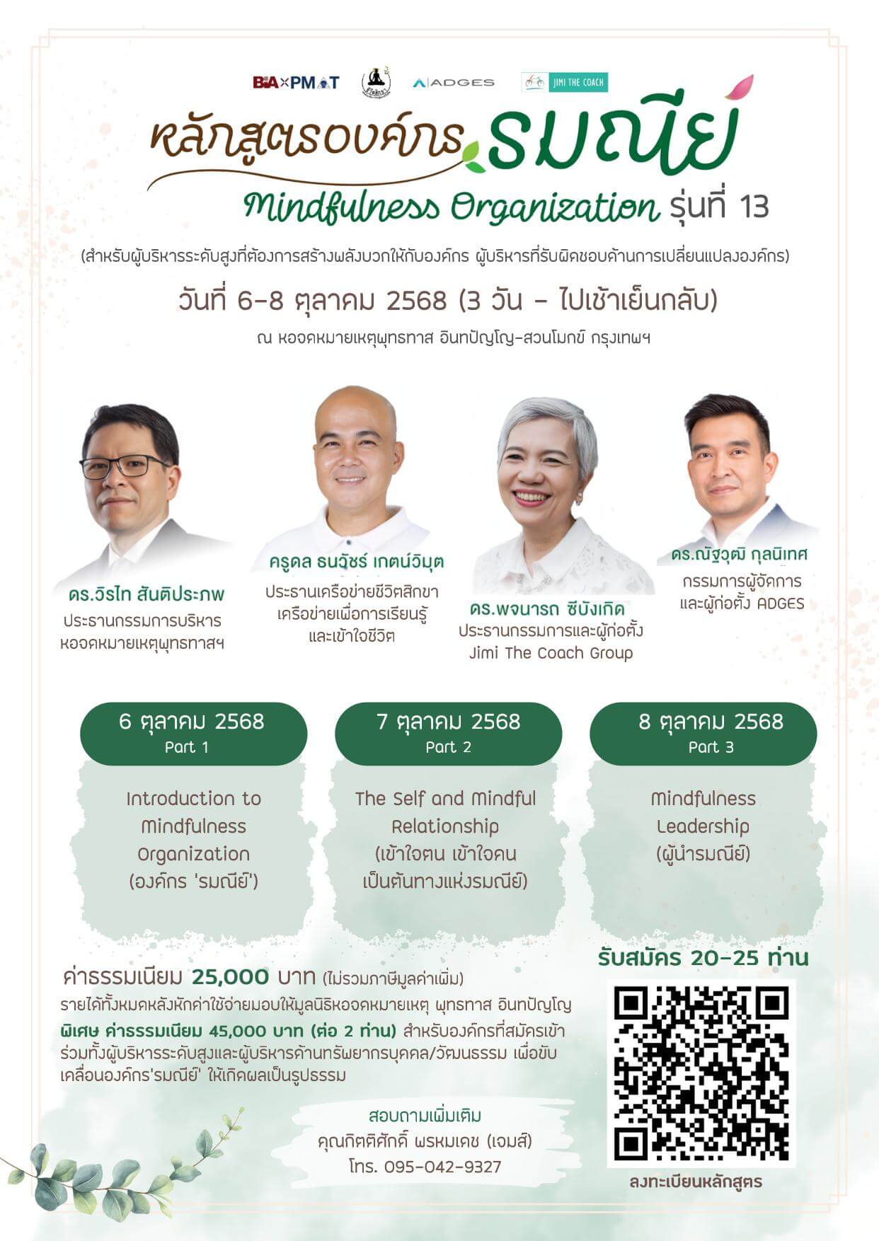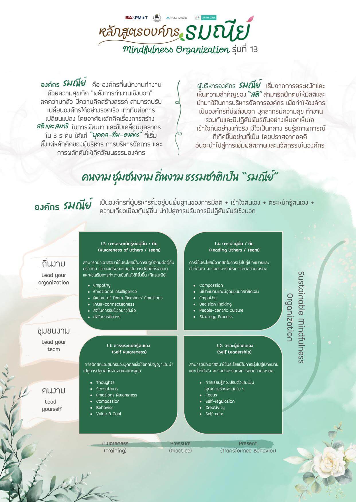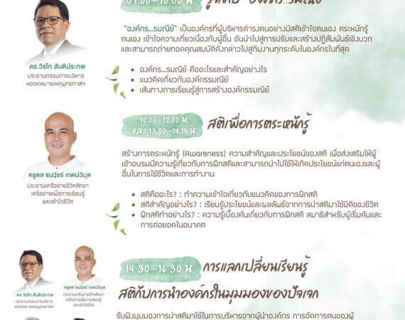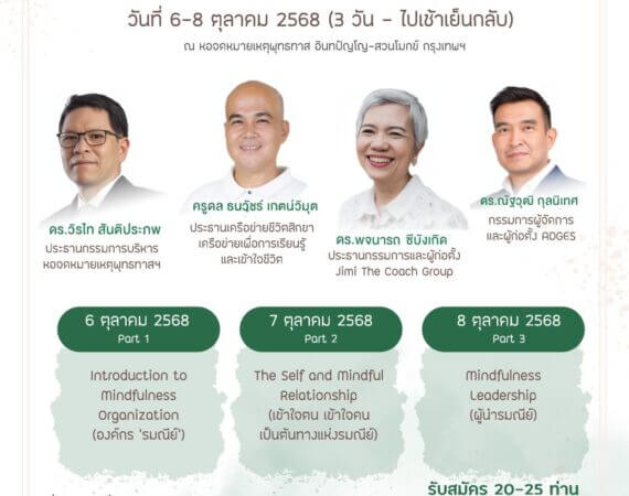 • ชื่อหลักสูตร: องค์กร’รมณีย์’ (Mindfulness Organization) รุ่นที่ 13