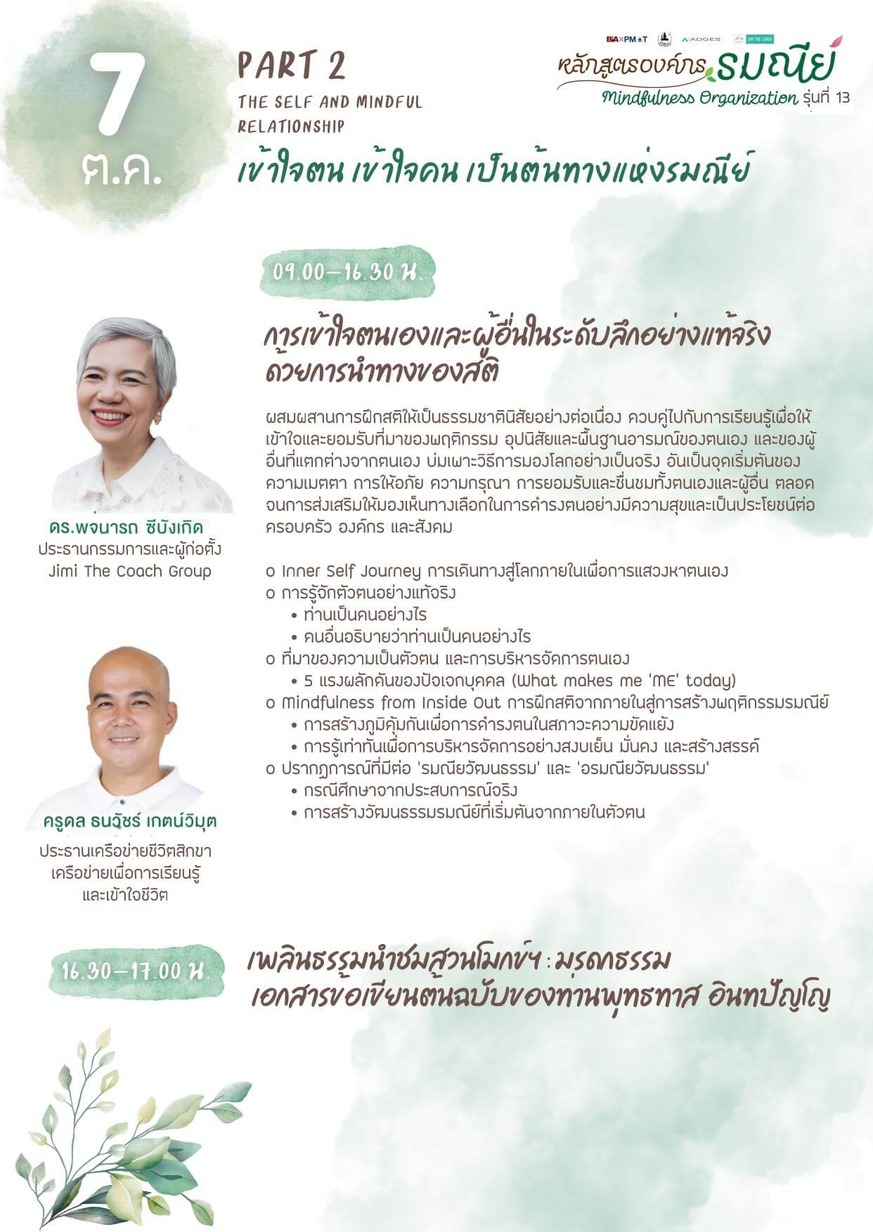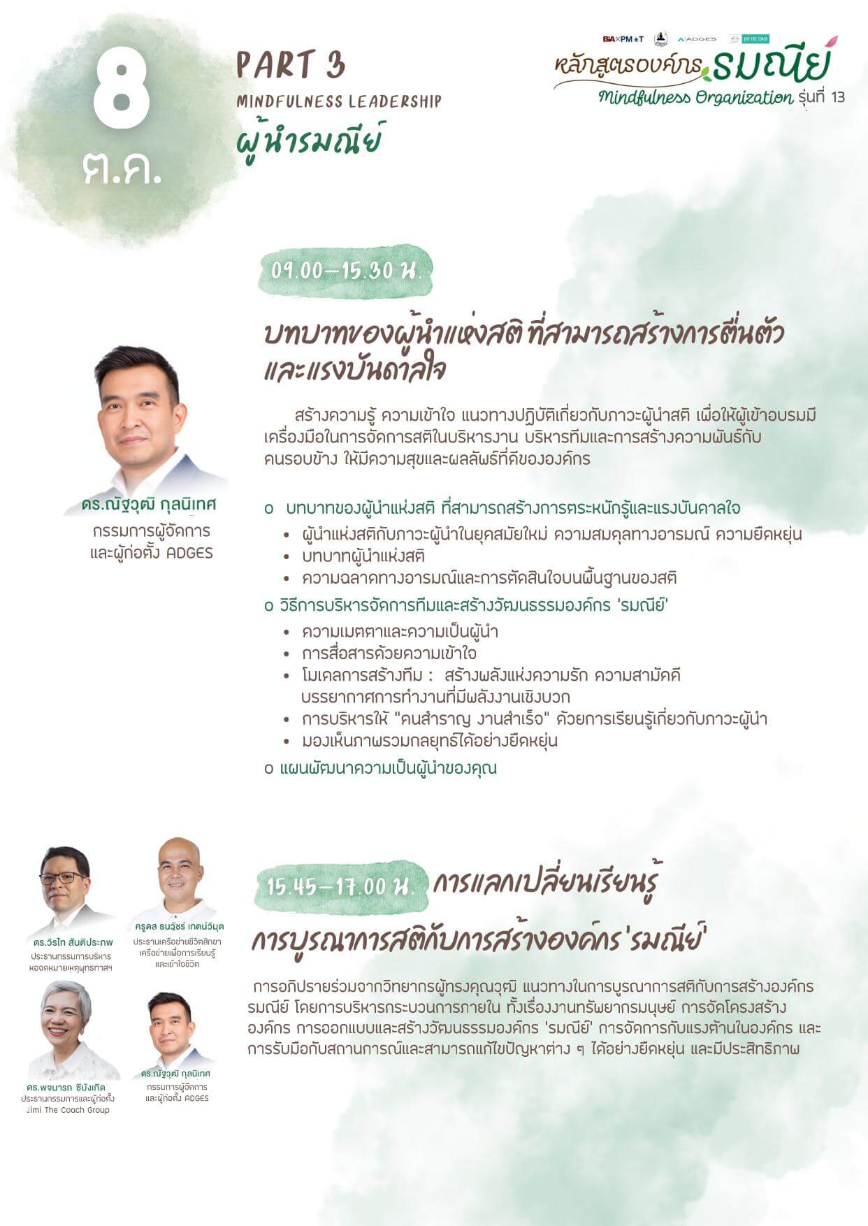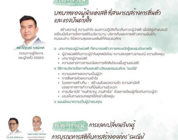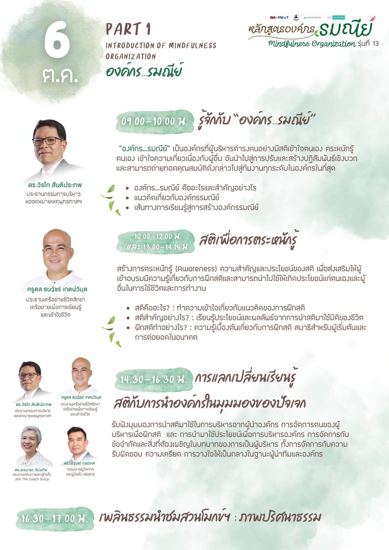 • ชื่อหลักสูตร: องค์กร’รมณีย์’ (Mindfulness Organization) รุ่นที่ 13