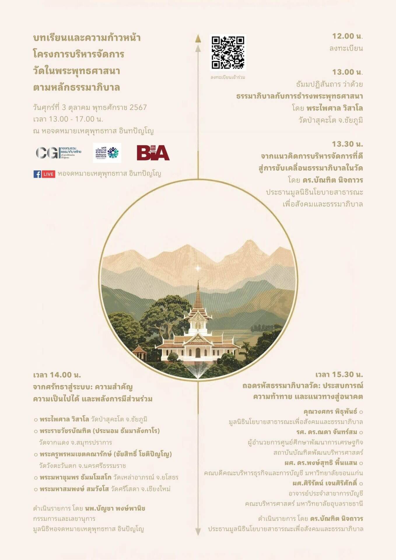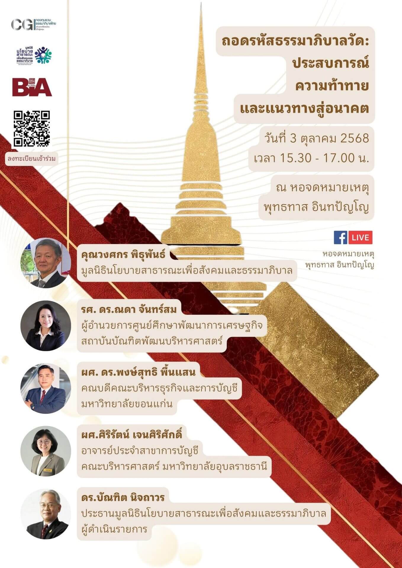 ขอเชิญร่วม เวทีแลกเปลี่ยน “บทเรียนและความก้าวหน้า” โครงการบริหารจัดการวัดตามหลักธรรมาภิบาล 3 ตุลาคม 2568